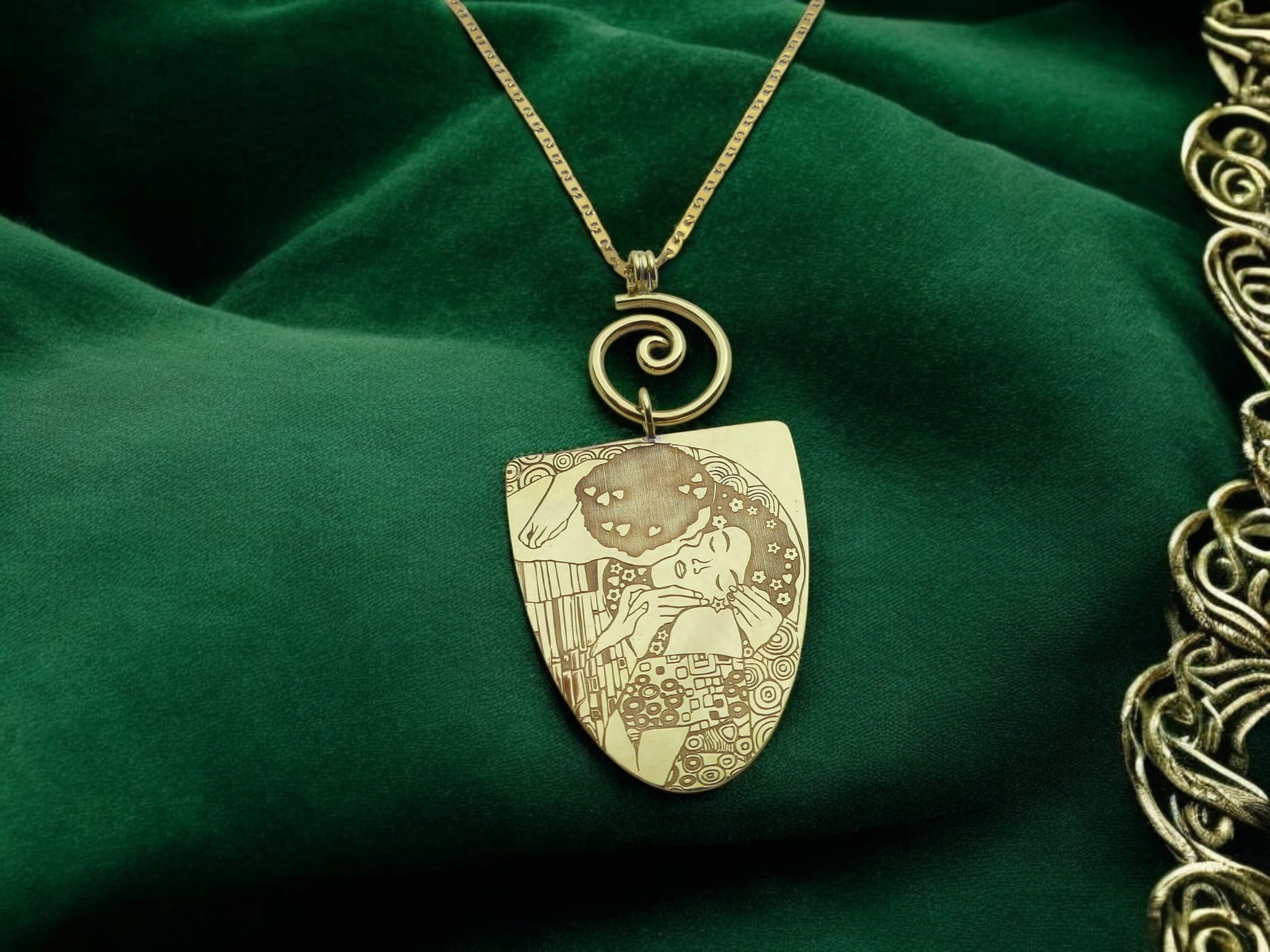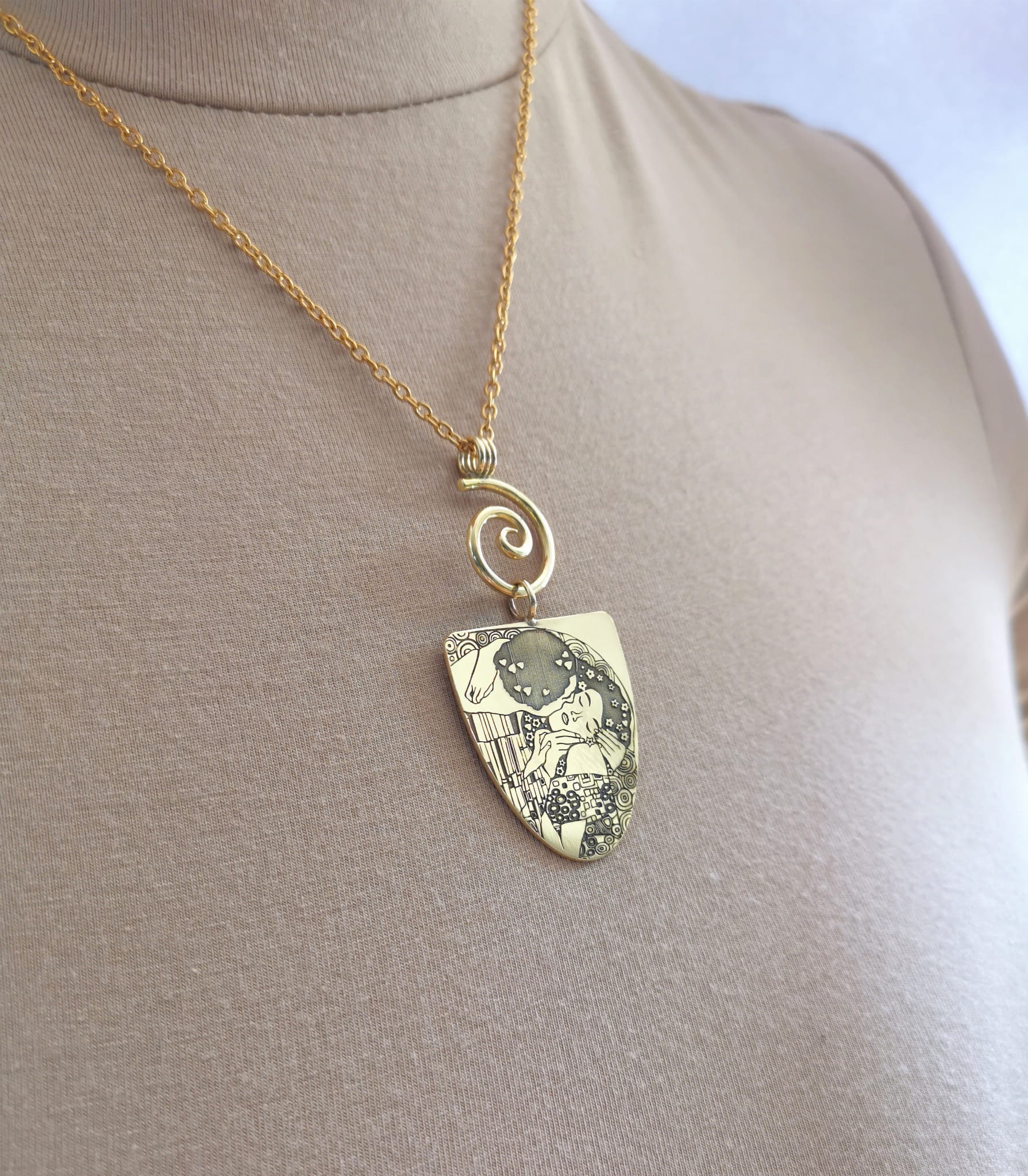 Kiss - Pocałunek, Gustav Klimt, duży wisiorek damski 55mm