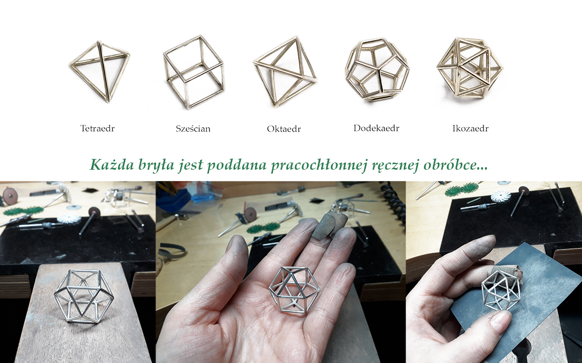 Jest to autorska kolekcja pięciu Brył Platońskich, wykonana w srebrze przez projektantkę Paulinę Gasiun.