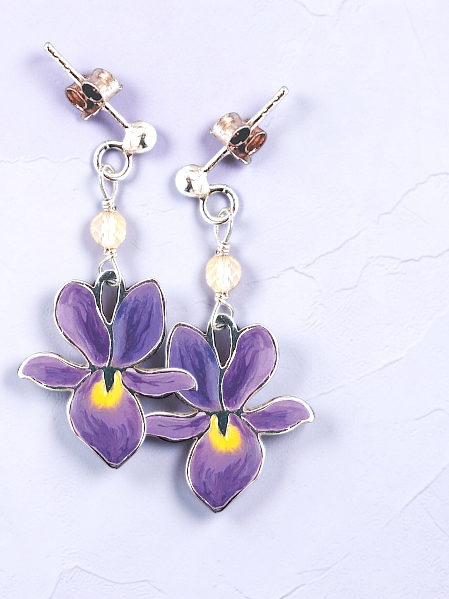Fiołek - wiszące kolczyki z emalią i cytrynami
