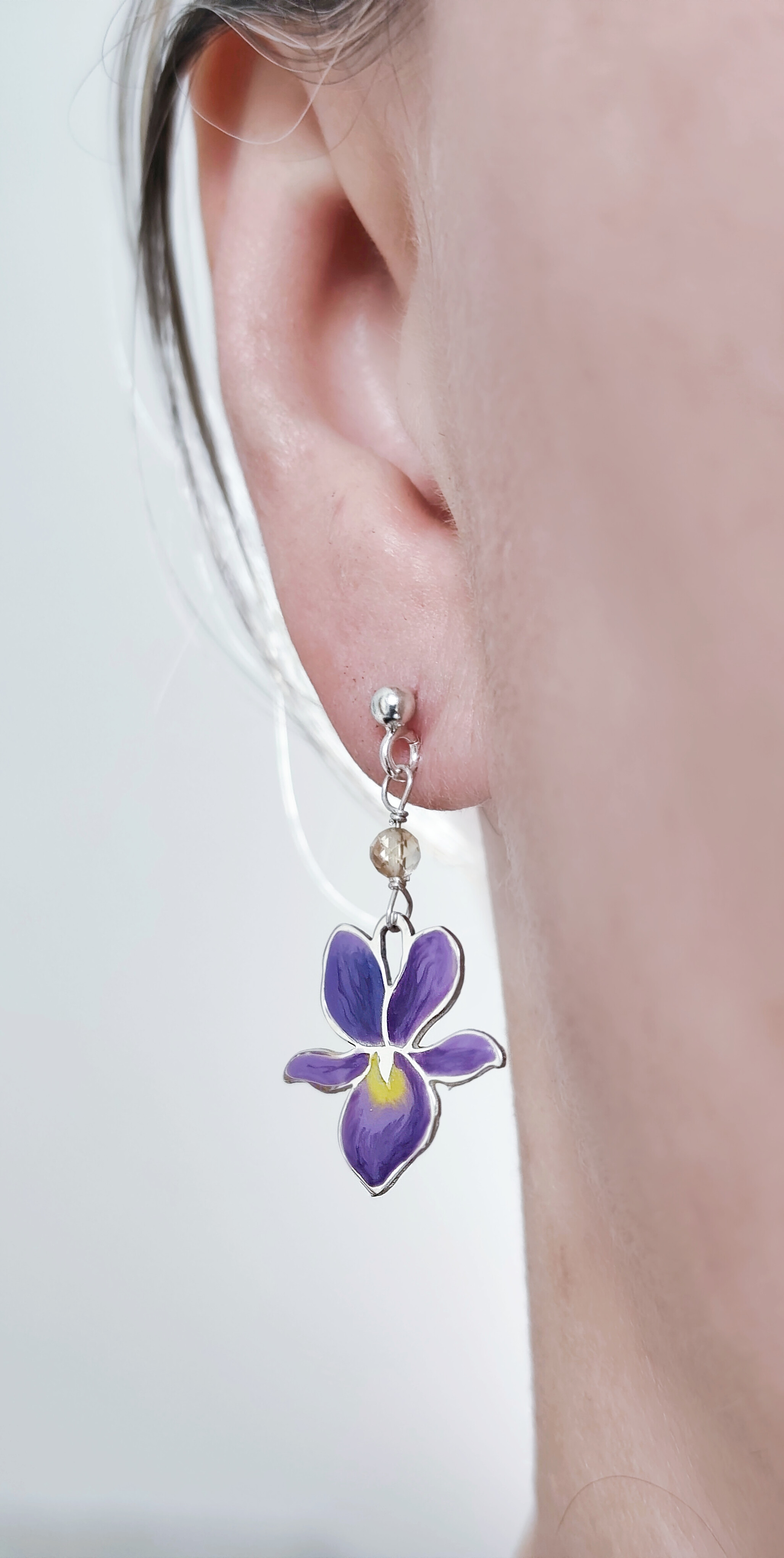 Fiołki malowane są ręcznie żywicą emaliową - każdy egzemplarz delikatnie się różni, dlatego kolekcja BlossomYou jest unikatowa :). Dodałam ok 4mm cytryny aby lekko przedłużyć kolczyki, przepięknie dyndają a kamienie dodają uroku fiołkom.