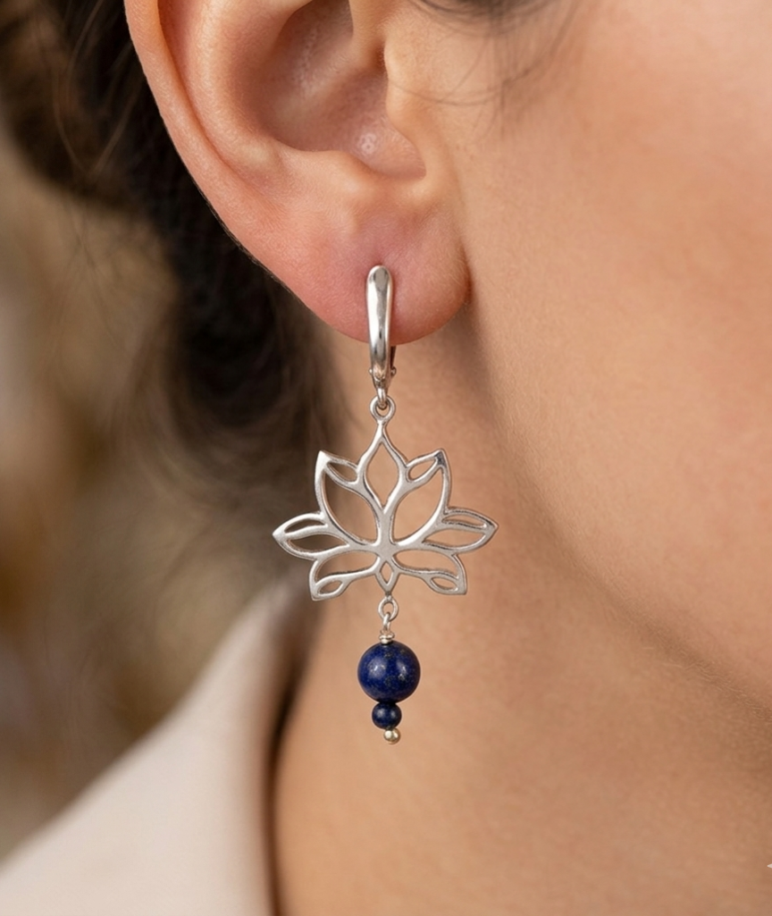 Kolczyki Kwiat Lotosu z lapis lazuli, srebro pr 925