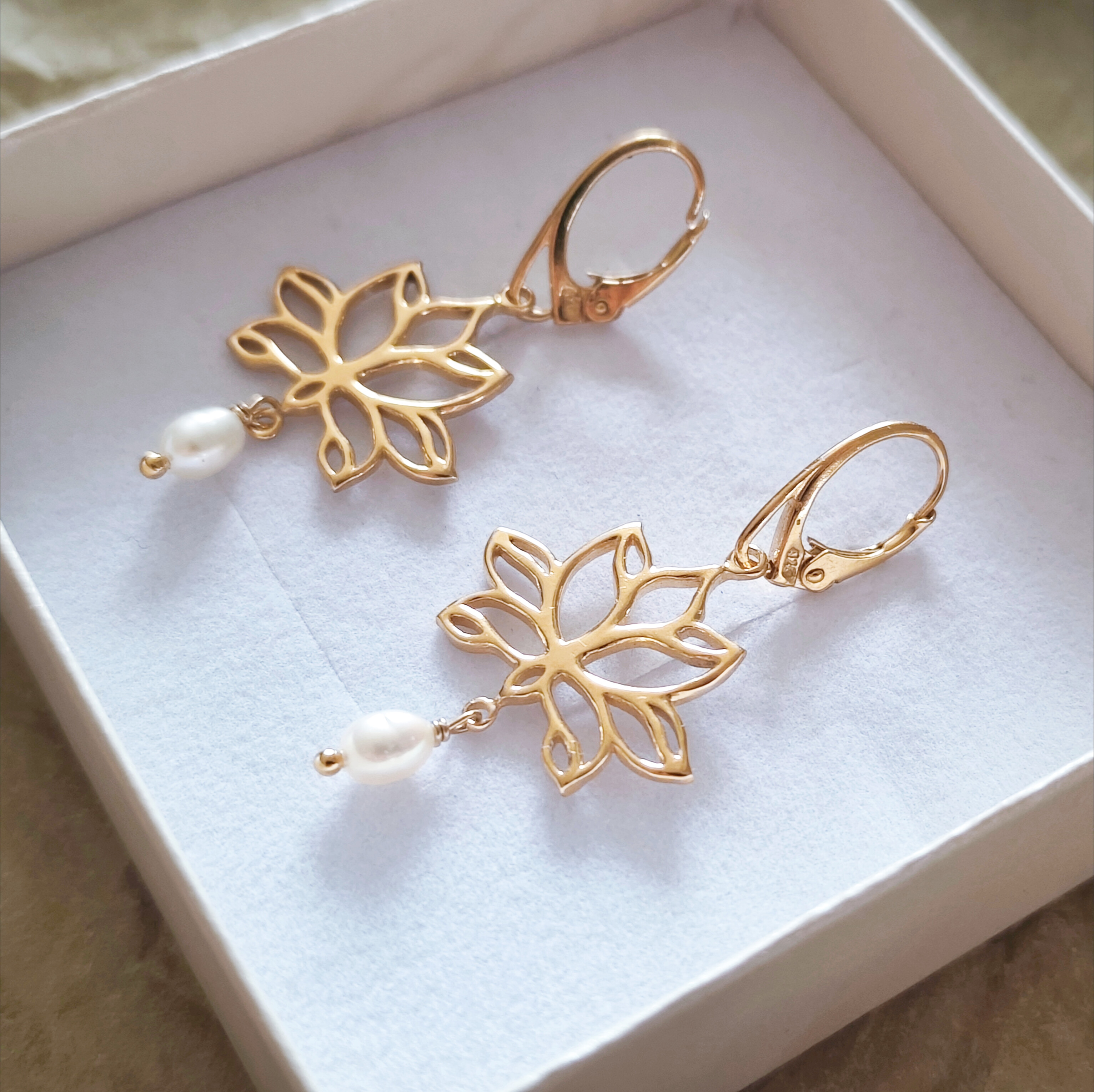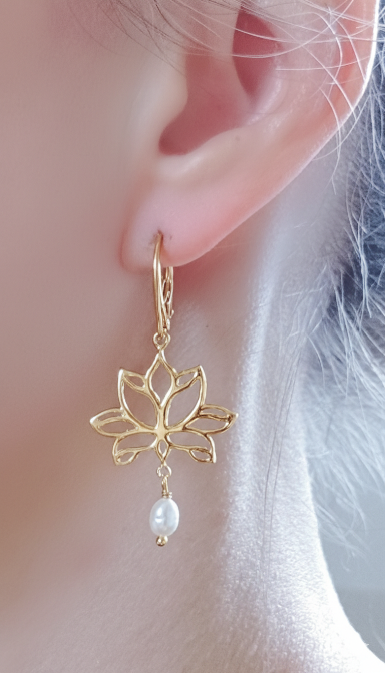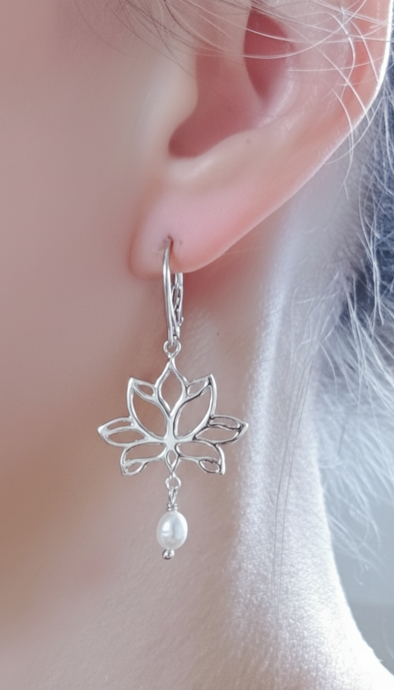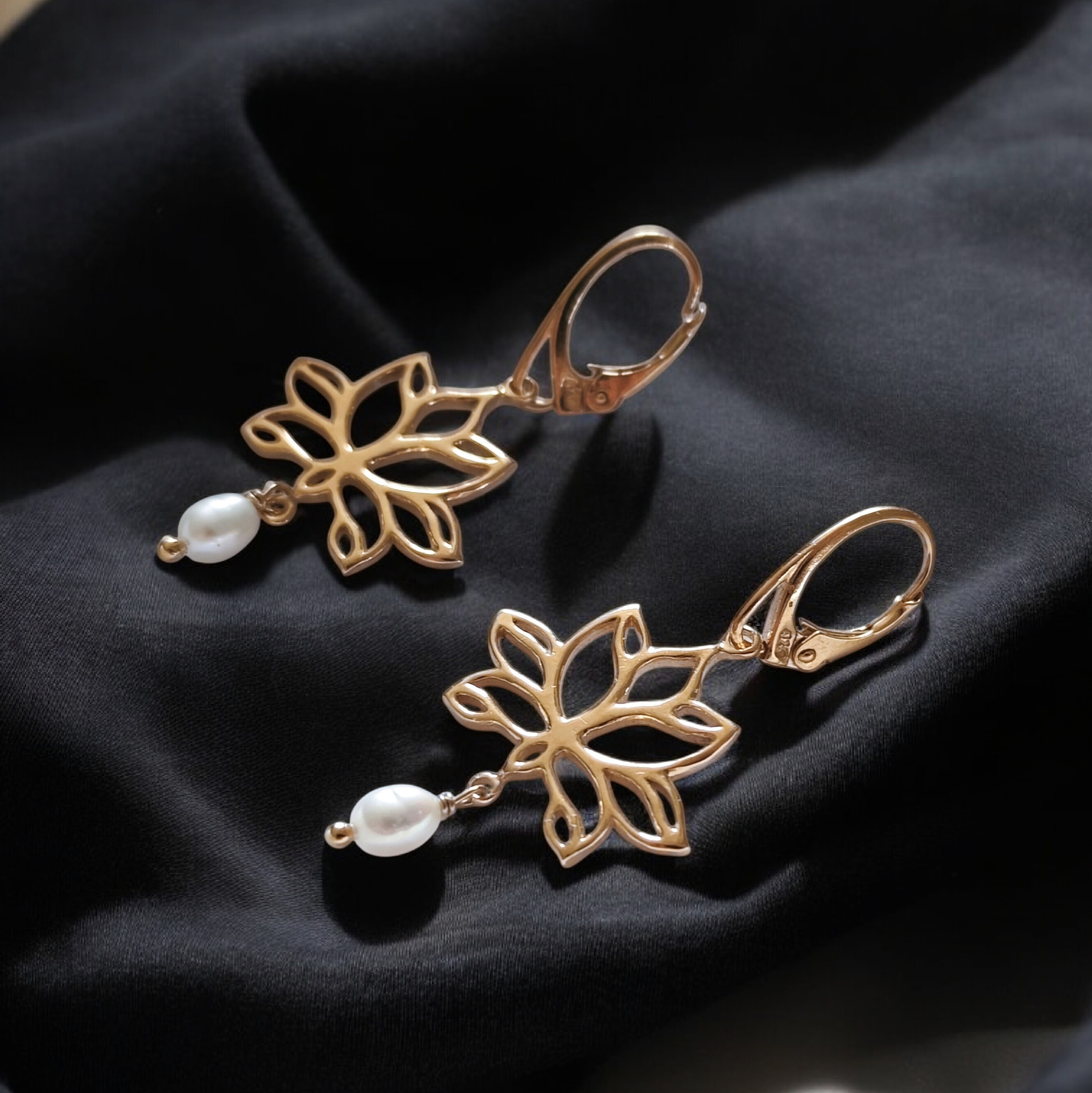 Kolczyki Lotosy z Perłami – Symbol Czystości i Rozkwitu
