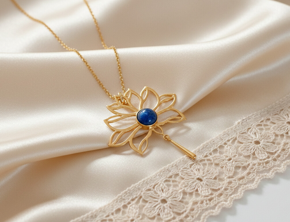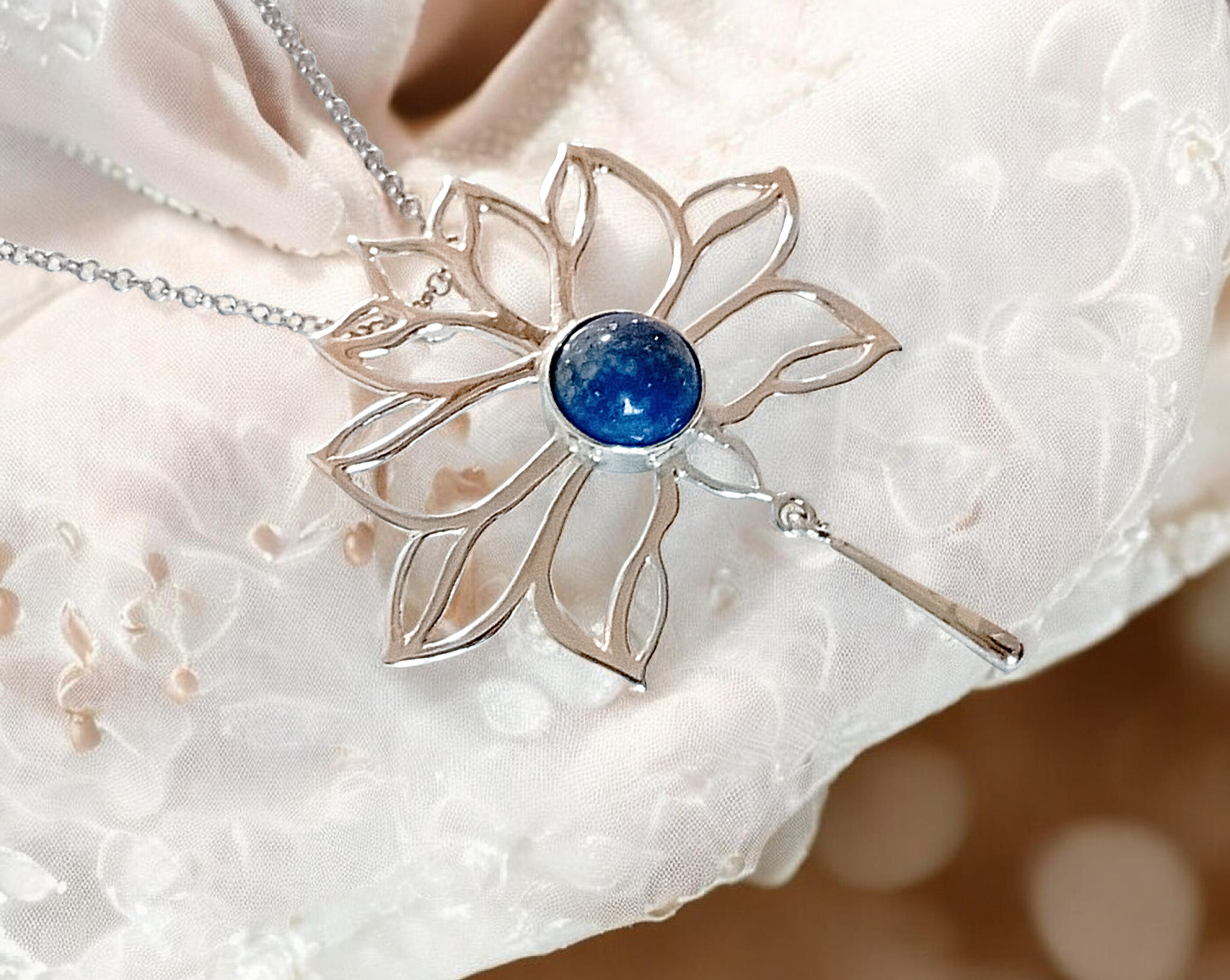 Kwiat Lotosu z lapis lazuli, srebrny wisior damski pr 925