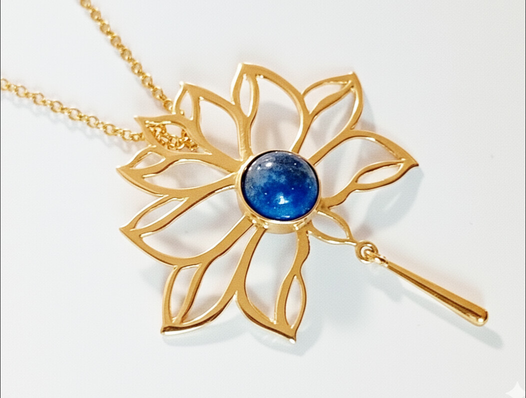 Wisior Kwiatu Lotosu powstał w mojej pracowni złotniczej wg. mojego własnego projektu, rysowanego na matrycy Kwiatu Życia.