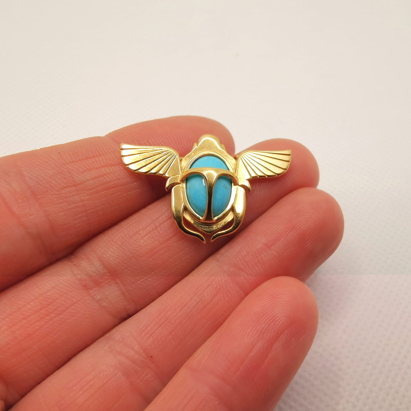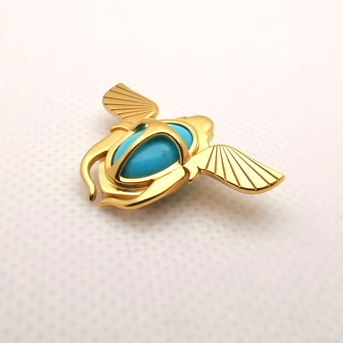Cały element ze skarabeuszem składa się z 3 warstw wyciętych precyzyjnie, grawerowanych i srebrnych blaszek.