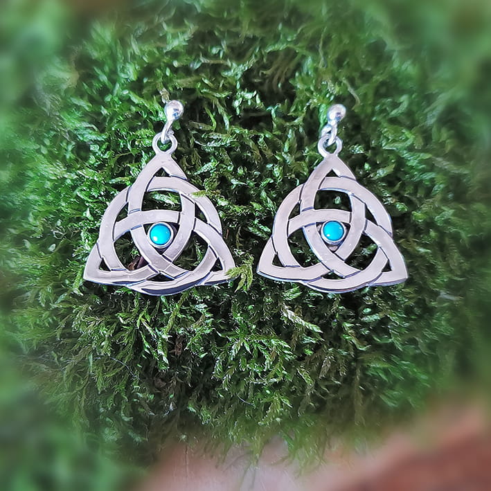 Kolczyki wykonałam w srebrze próby 925. W środku symbolu jest oprawiony turkus o średnicy ok. 4mm.
