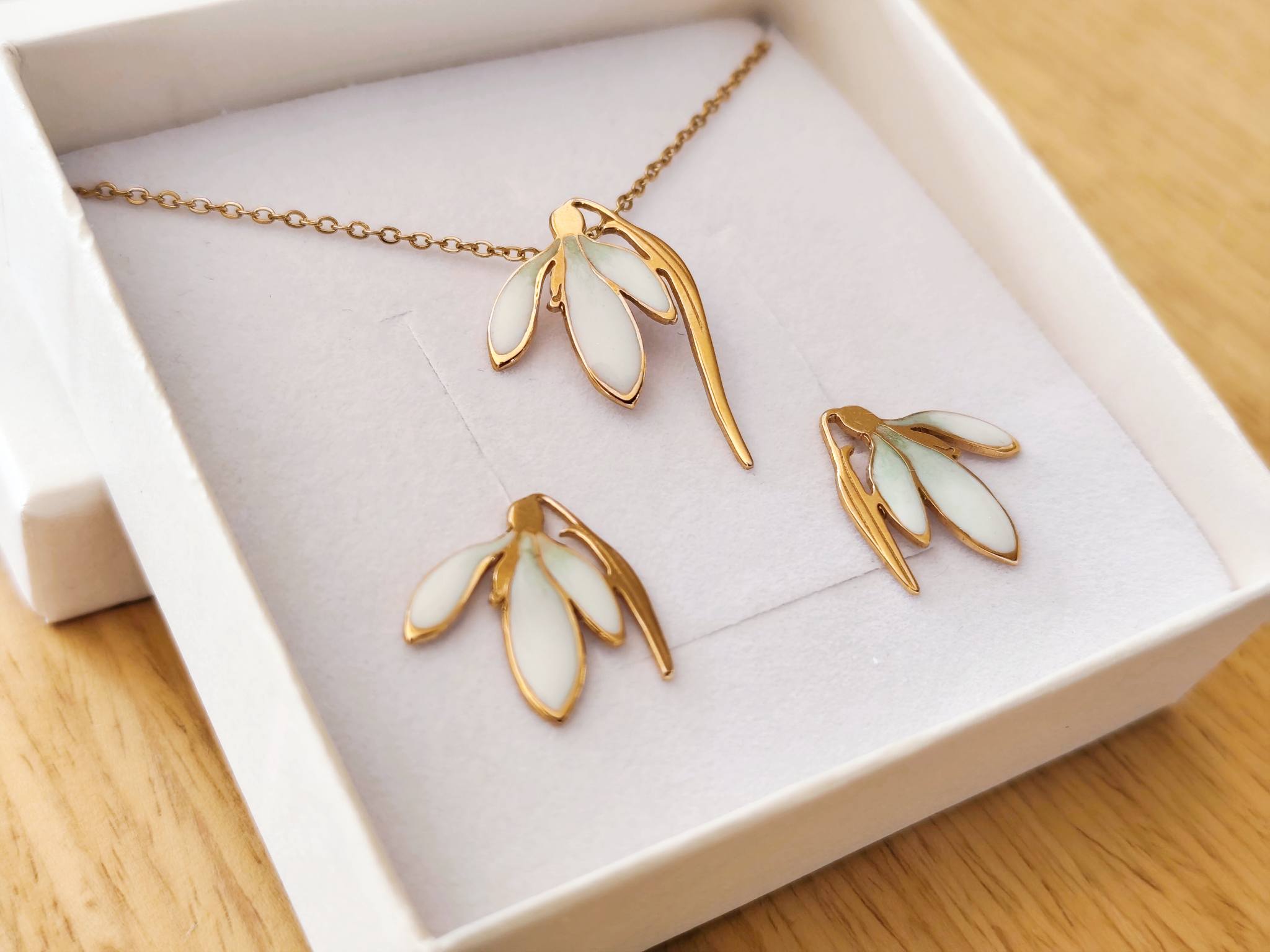 Wraz z kolczykami do kompletu jest idealnym dodatkiem do każdej stylizacji kobiecej, idealnie podkreśla dekolt. Przebiśniegi mają piękną symbolikę, przeczytasz o niej TUTAJ.