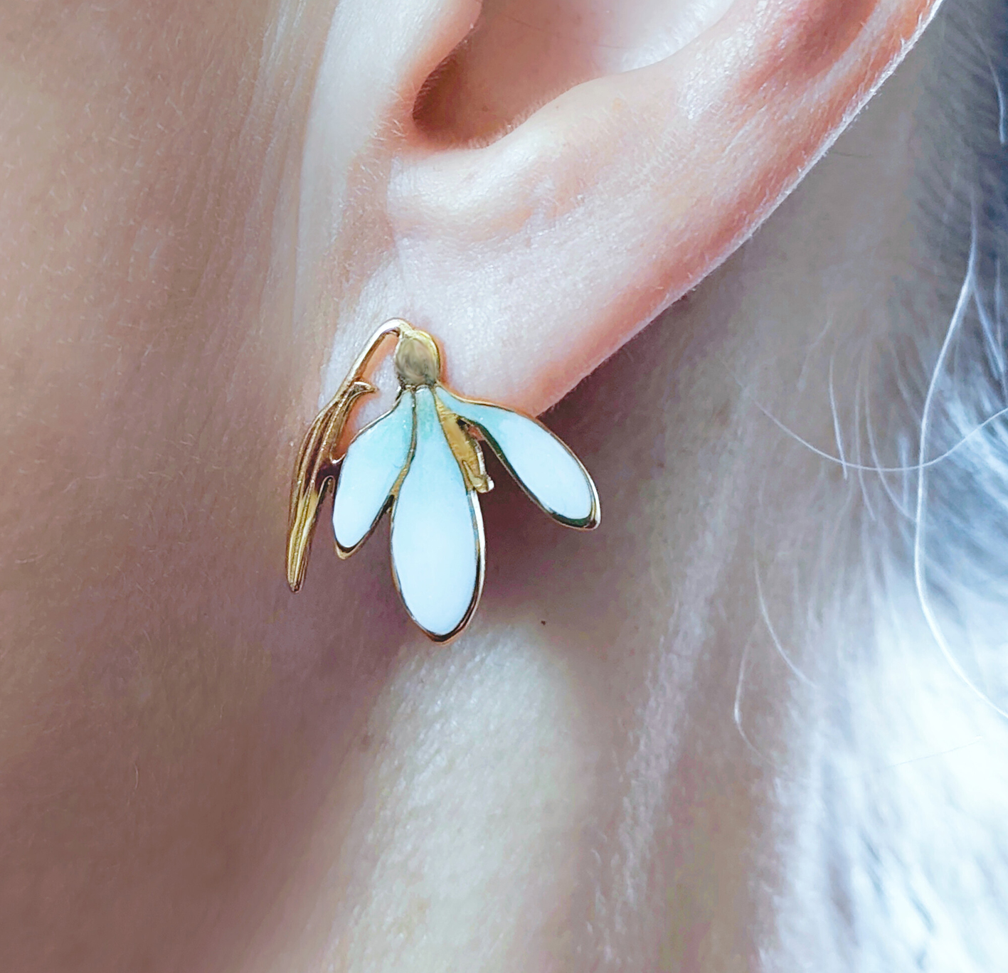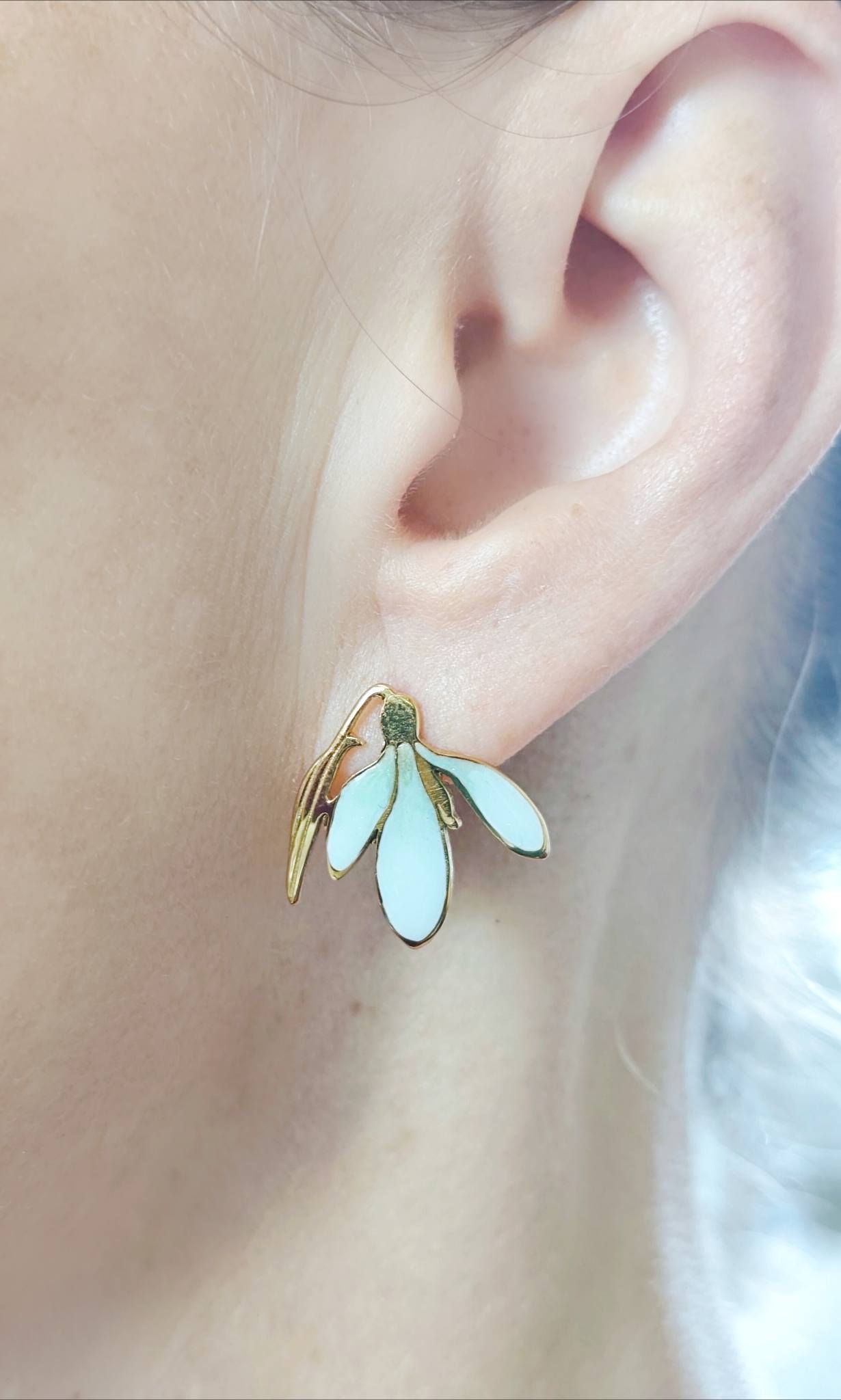 Przebiśniegi - kolczyki z emalią , sztyft